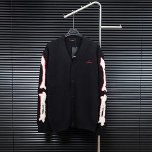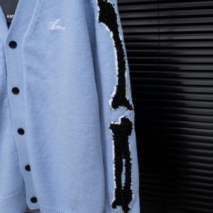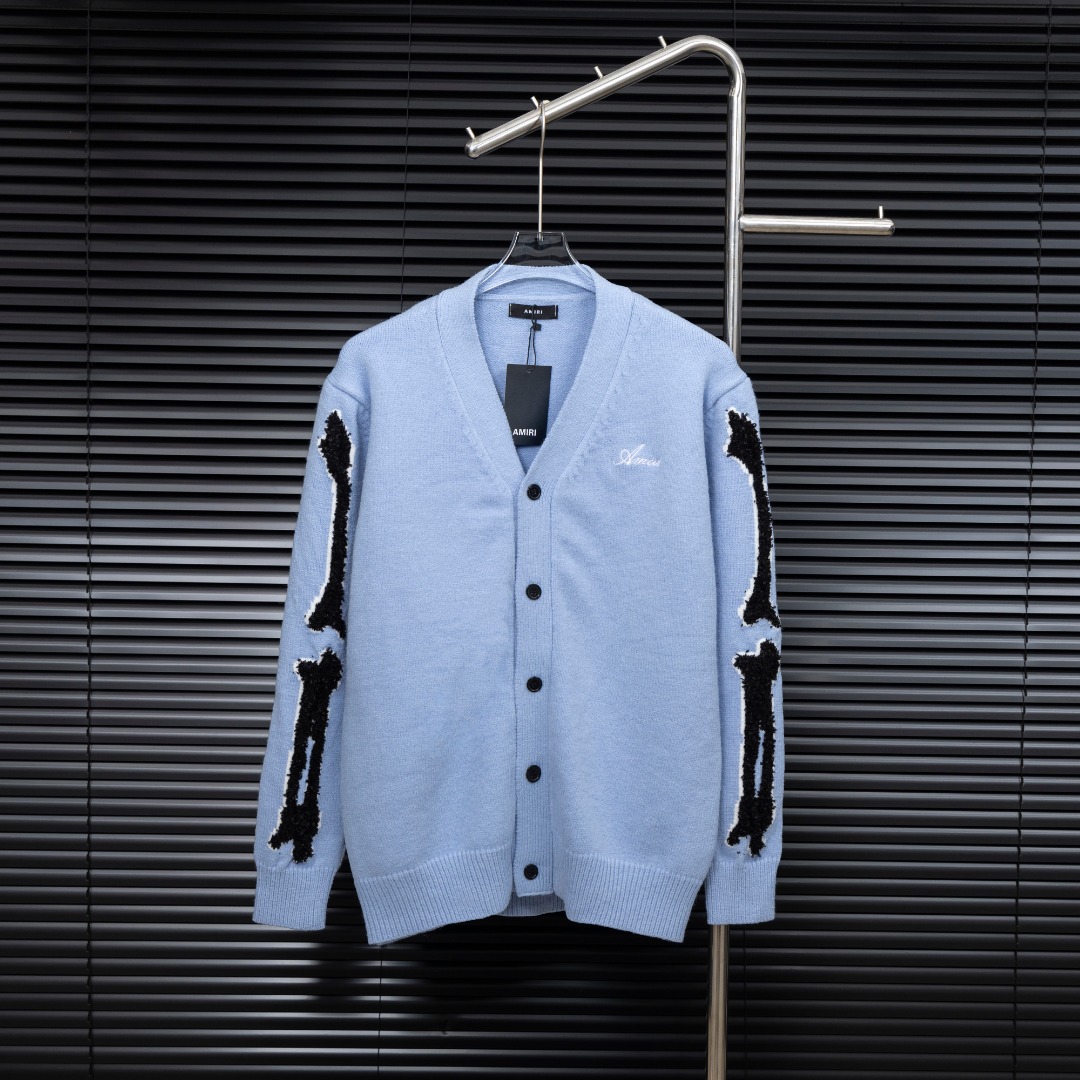 AMIRI bone patchwork long-sleeved knitted cardigan