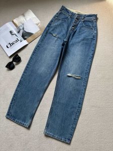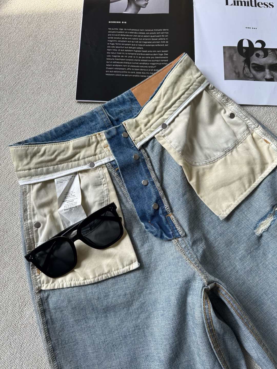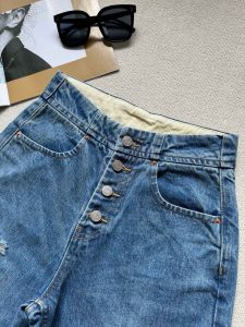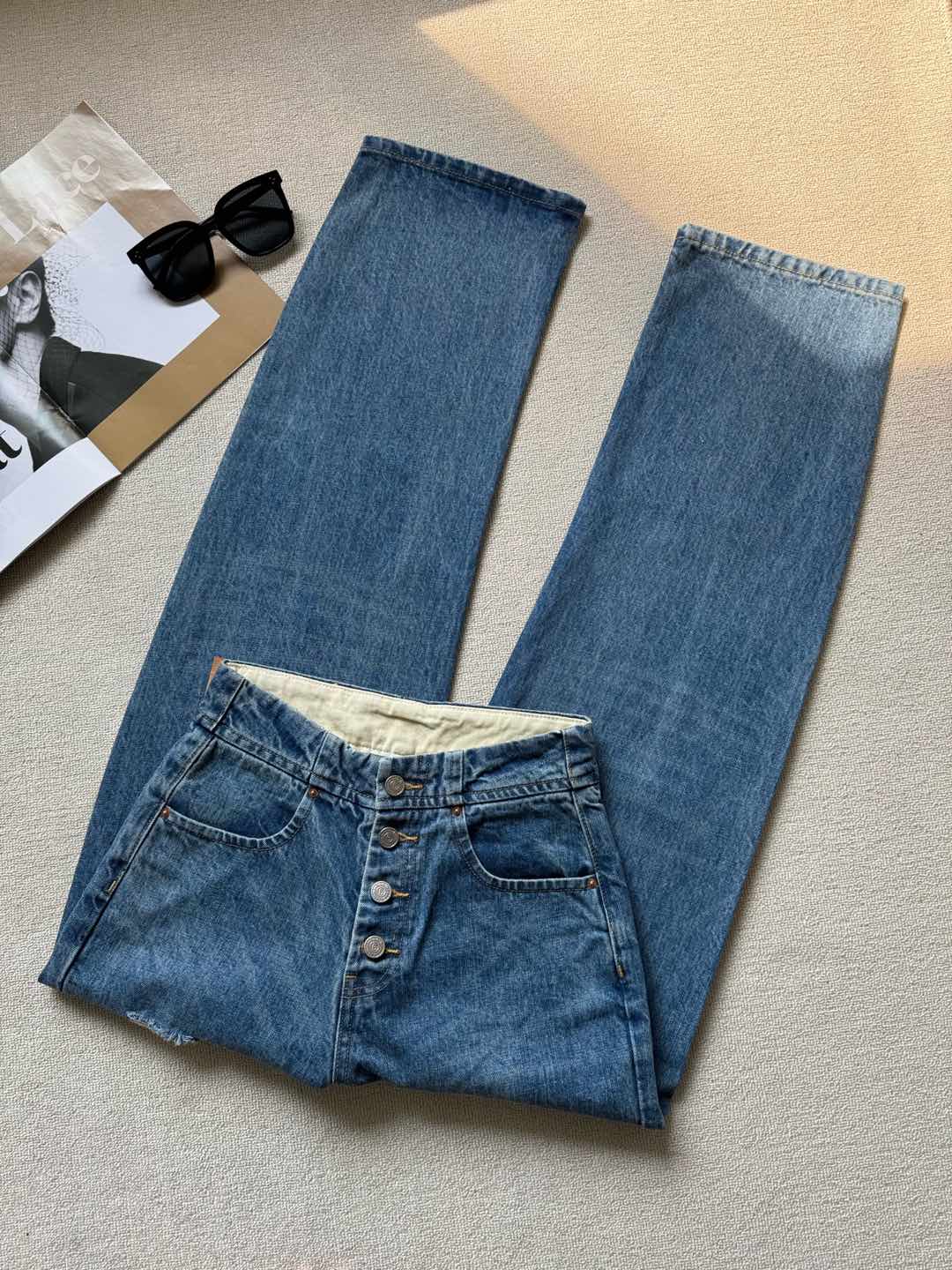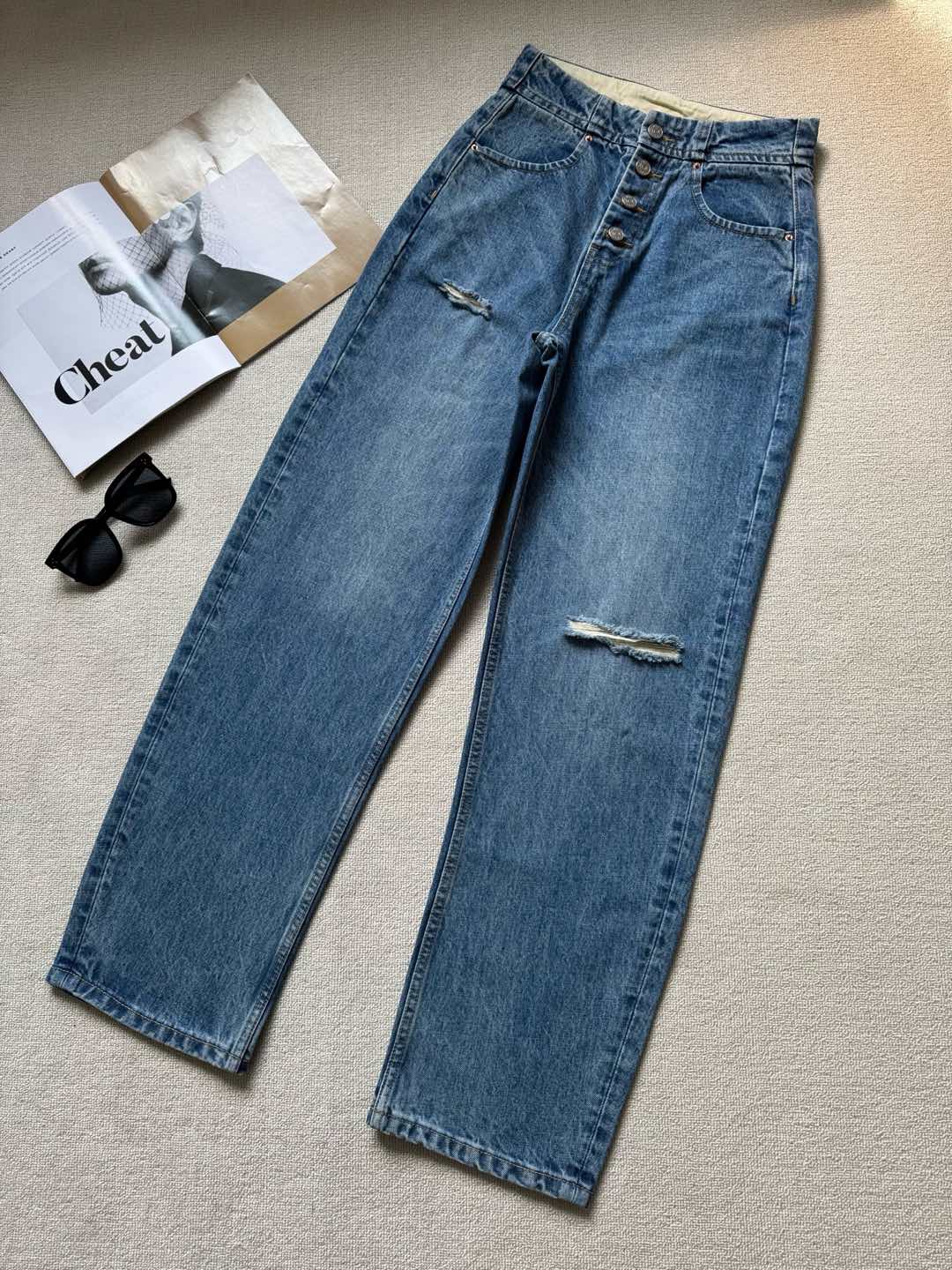 MM6 Early Spring New Item: Button-Fly High-Waist Slim-Fit Ripped Versatile Slightly Curved Denim Jeans